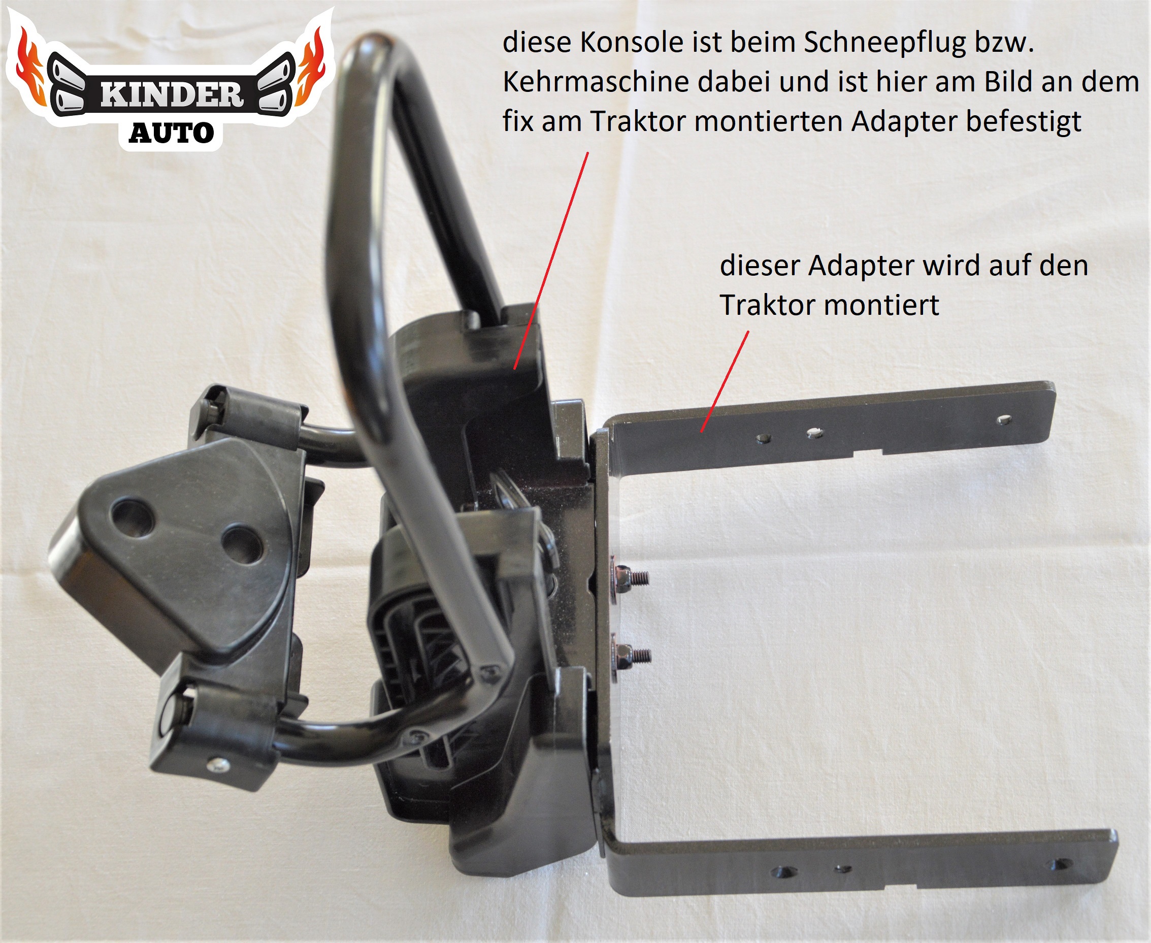 Dank eines speziell für die Peg Perego Traktoren entwickelten Adapters, welcher in diesem Angebot enthalten ist, kann nun endlich auch ein Schneepflug an die Elektrotraktoren von PEG PEREGO montiert werden.